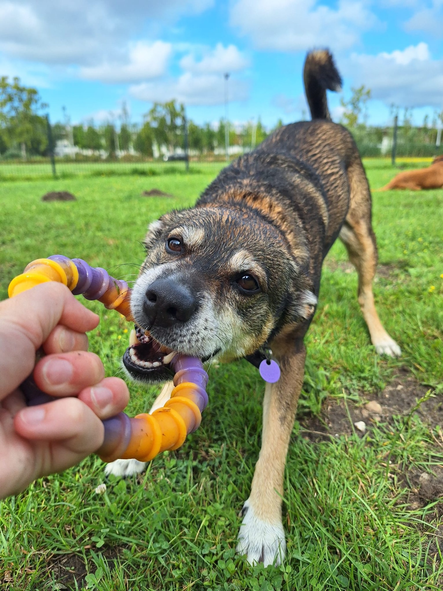 - 1,5 uur lang wandelen en spelen met soortgenootjes op een groot en veilig omheind speelveld.